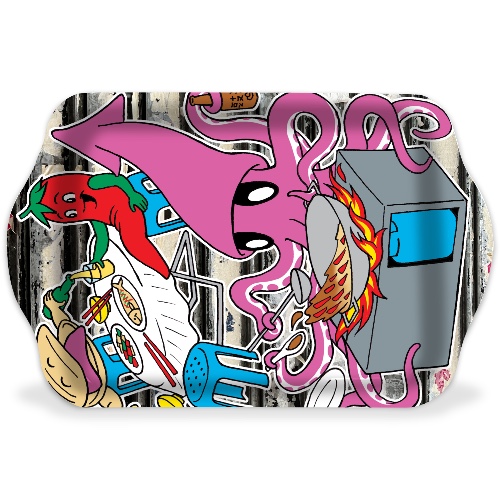 Start designing your rolling tray today. With endless customization options, no minimum order restrictions, and wholesale pricing for large quantities, you have everything you need to create a custom rolling tray that’s uniquely yours. *Note: Due to the tray customization process and curvature of the tray, any design elements placed on the curved/raised edges of the tray may be stretched, cut off, or not aligned exactly as seen in the design mockup/preview. As such, please do NOT place any important design elements like logos and text on the curved, raised, or tray handle areas. Place those design elements in the center of the tray. For best results, you can cover the whole tray, handles, curves and all raised areas with background colors or graphics that are more OK for stretch / crop while keeping text or logos more centered.