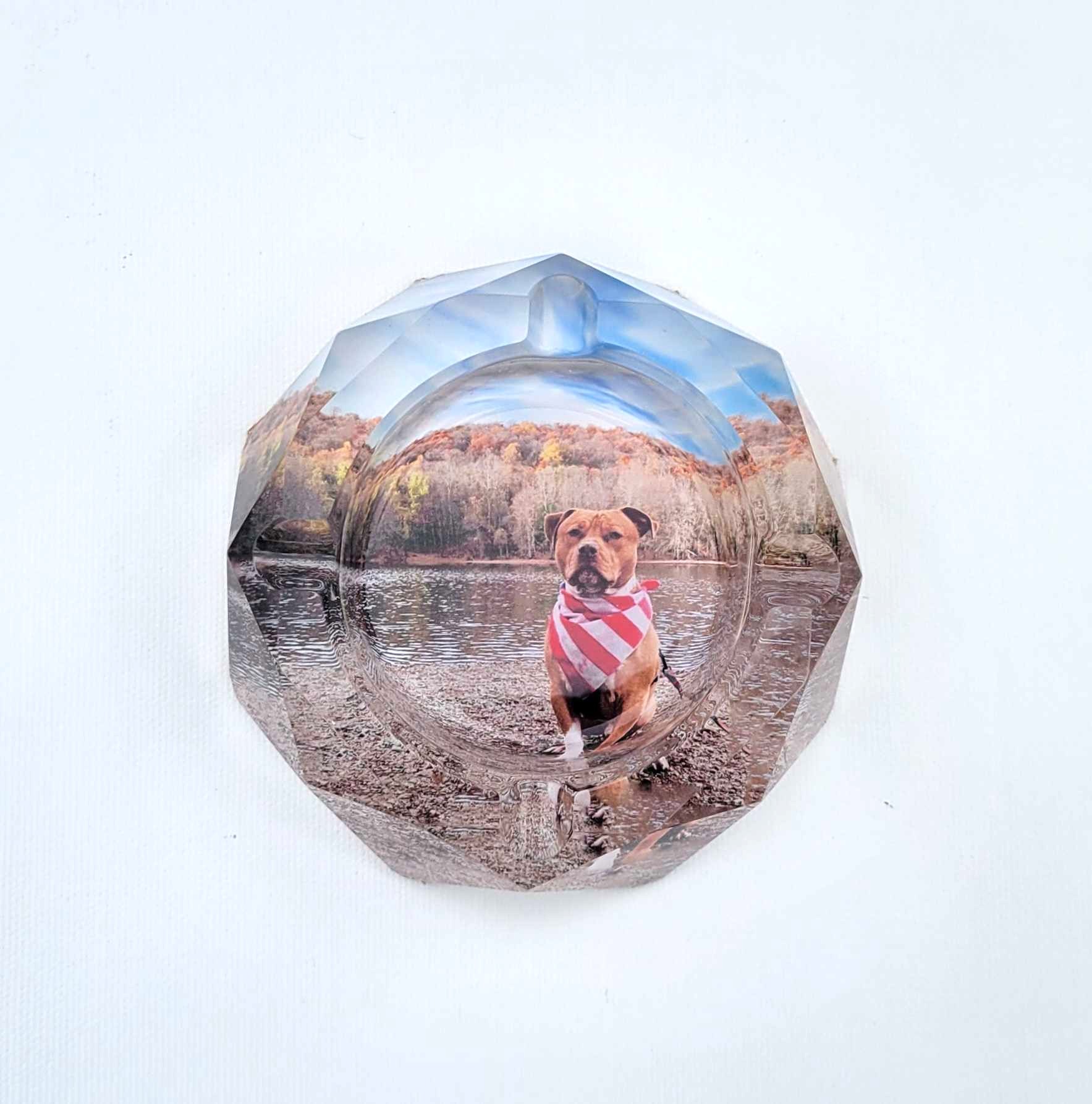 Upload your own photos, designs, or logos to create a one-of-a-kind crystal glass ashtray that’s uniquely yours. Whether it’s a cherished memory, a company logo, your art, anything you want!